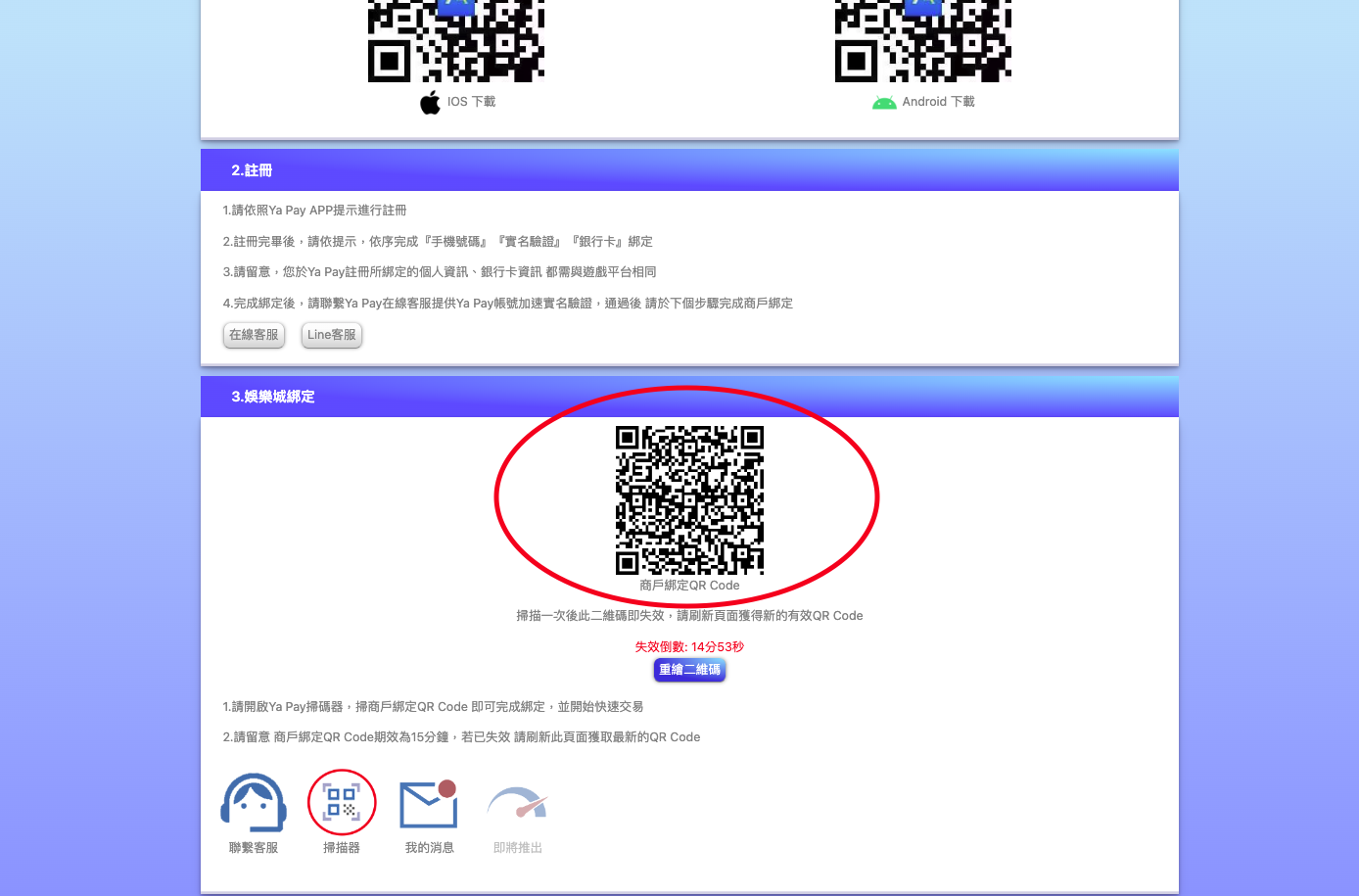 3. 請使用Ya Pay掃碼器,掃描下圖『商戶綁定QR Code』