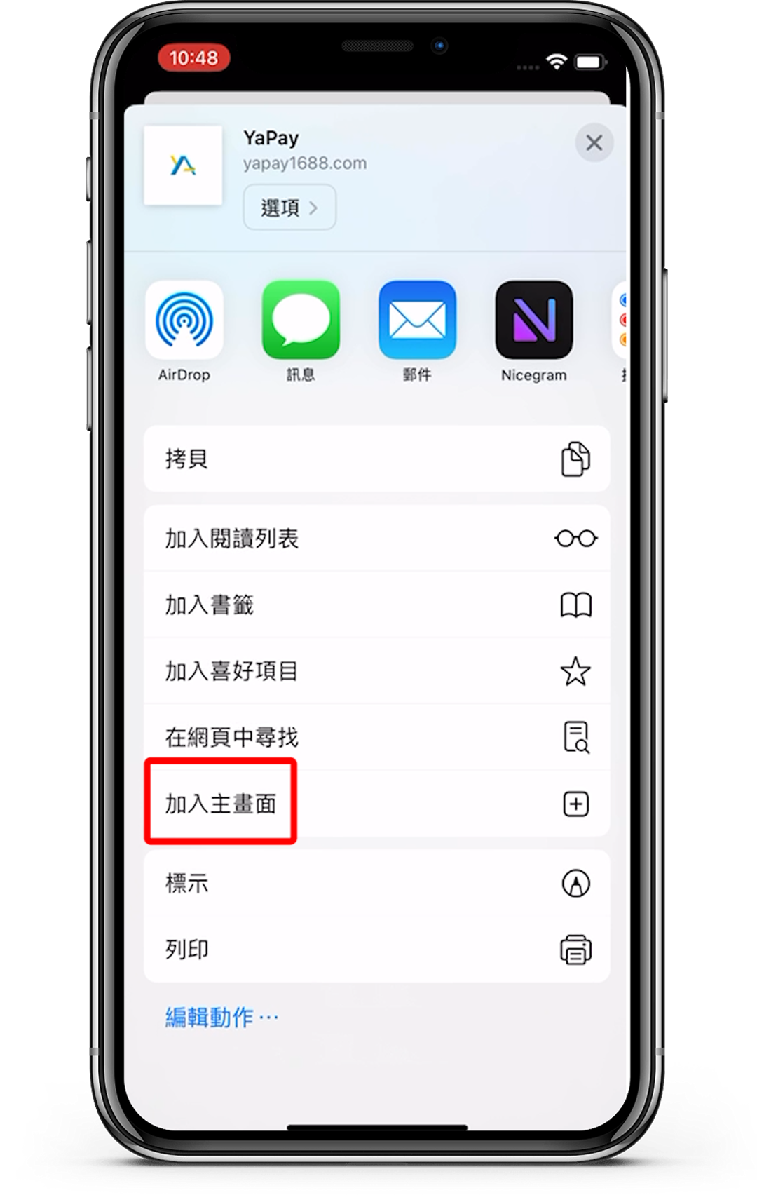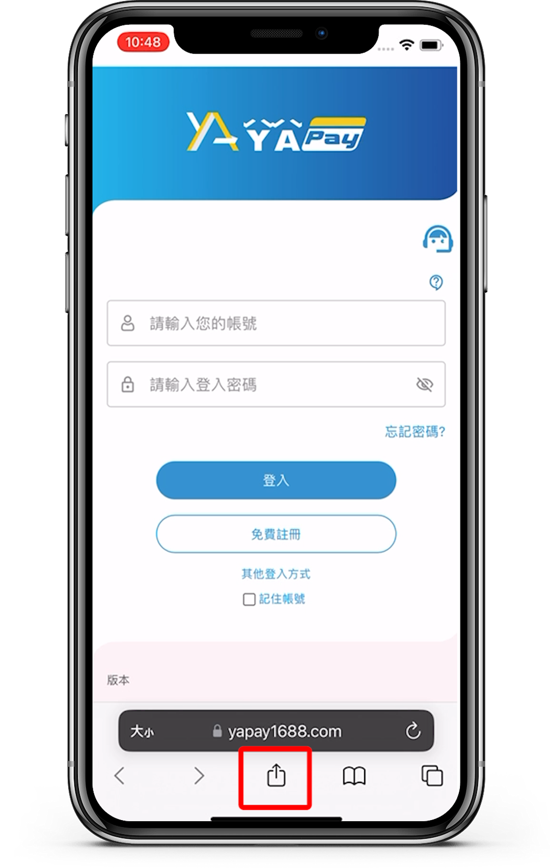 使用iOS瀏覽器Safari開啟YaPay網址
